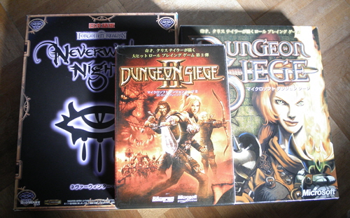 「Neverwinter Nights」、「Dungeon Siege」、「Dungeon SiegeⅡ」のソフトが出てきた。「久しぶりにプレイしてみようか」とパッケージを開けると、どのソフトもCD-ROMが一枚ない(どうも起動用のCD-ROMが無いようだ)。もう、適当なパッケージに入れるからこうなるんだよ>自分。30分ほど探したが、まったく見つからない。仕方ないので、プレイは諦めたよ。捨ててはないと思うので、その内に見つかるだろう。