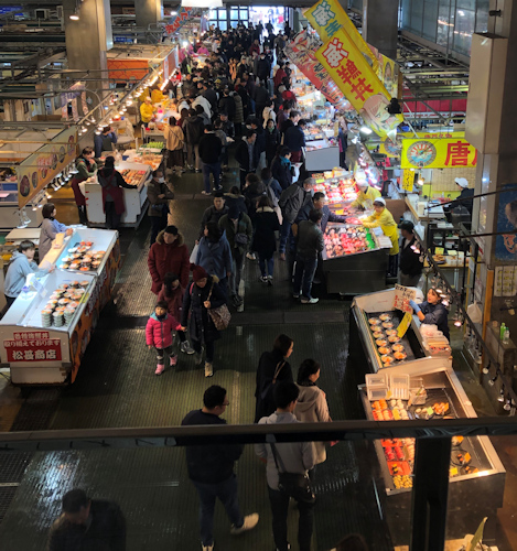 今年も唐戸市場に魚を食べに行ってきた。はっきりとした天気でなかったが、相変わらず人が多かったな。