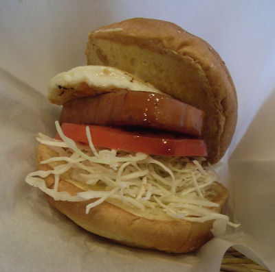 久しぶりに「フレッシュネスバーガー」に行く(お気に入りのバーガーショップです。特に100%オレンジジュースが好き)。すると新製品が出ていたので、さっそく食べることにした。「スパムバーガー」と言うものだが、厚切りのスパムがなかなか美味で、結構気に入った。満足!