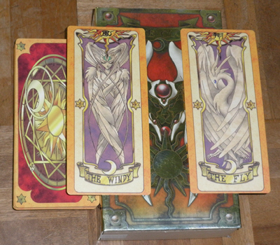 「カードキャプターさくら」ネタを一つ。実は私、未だに写真のようなものを持っていたりする。ちなみに上に置いているのは、今日の放送のときに出てきた「WINDY」と「FLY」のカード。