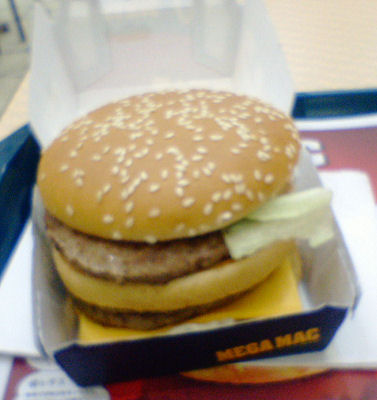 期間限定の「メガマック」を食べてみる。なんせ、ビーフがビッグマックの2倍の4枚だからな。食べ終わってみると、「こんなもん?」っと別に大したことなかった。ところが少しすると、胃がズシッと。この食べ物、後からきますよ。あまり食べ過ぎない方が良いかと。