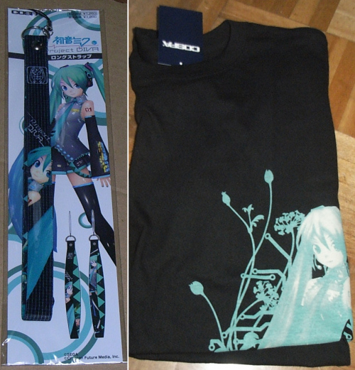 以前、注文していた初音ミクのTシャツとストラップが届いた。いや~、なかなかイイですよ、この商品。明日からさっそく着て(付けて)、外出しようっと。