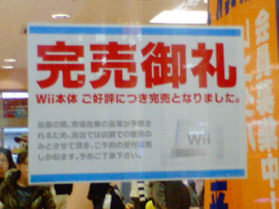 そう言えば、昨日「wii」の発売日だったなぁ。すっかり忘れていた。今日確認したら、やはり完売していた。…にしても、よくこんなハードが売れたなぁ。これって言うソフトもないし。私は購入するつもりない。