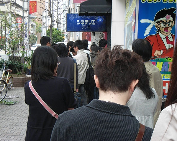 「秒速5センチメートル」を観に行く。東京では長蛇の列が出来たと聞いていたので、少し早めに行く。いやぁ、早く行って良かった。福岡でも長蛇の列が出来ていた(東京とは比べ物にならないでしょうが)。しかも館内は満員で、立ち見までいた(後からスタッフが椅子を出していたが)。やっぱ、新海誠監督は人気あるんだな。来週は(4月7日)は新海誠監督の舞台挨拶があるらしいが、さらに入場者は多くなるんだろうな。