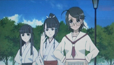 ・東京魔人學園剣風帖 龍龍 #8「外法編 第八夜「穴の女」」…腕を探す魔物って、やっぱ元ネタは「羅生門の鬼」なんだろうな。ところで、巫女姉妹の妹の雛乃(↓(一番左の娘))、可愛い♪