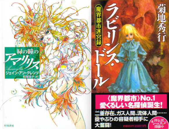 最近、購入本の紹介をまったくしてなかったが、今日買った本はどうしても紹介したいので、2冊ほど紹介。1冊目は、「緑の瞳のアマリリス(ジェイン・アン・クレンツ/ハヤカワ)」。未来の話で超能力者が難事件を解決する内容らしい。ストーリーには惹かれなかったのだが、表紙(↓)が気に入ったので購入(笑)。この手のイラストって、好きだなぁ。2冊目は「ラビリンスドール・魔界都市迷宮録(菊池秀行/祥伝社)」。菊池秀行って、あまり好きな作家でないので、「インベーダー・サマー」くらいしか読んだことなかったが、この表紙(↓)を見せられたら買わないわけにはいかない(爆)。内容は魔界都市シリーズの外伝の様だが、愛くるしい美少女が難事件を解決する…って言うのが気に入った(笑)。…にしても、2冊とも表紙買いかよ(笑)。