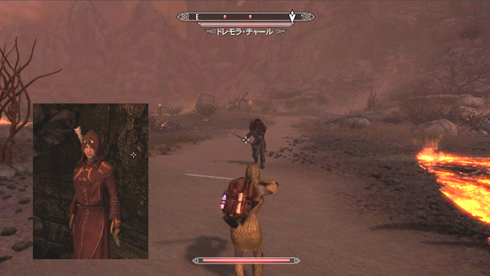 当然、レッドスカー洞窟は深遠の暁の信者の巣。でも深遠の暁のローブを着ていると仲間と見なし、戦わずに奥に入ることが出来る。奥に行くと敵ボスがおり、戦闘となるが、私は隠密&弓で一発で仕留めた。さて、いよいよオブリビオンの門の先へ。ここから、「結果」なるクエストがスタート。