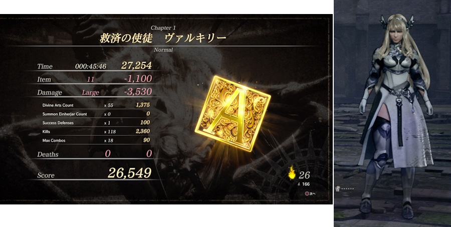 ・体験版の残りの部分をプレイ。最後に巨大な蜘蛛のような化け物を倒したらクリア。その後、評価が出るんだが、私は(A)だった。上手い人がプレイしたら、(S)とかになるんだろうな。