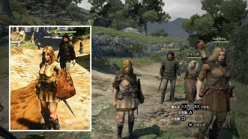 ・写真が現在のパーティ。ちなみに、左の白枠内がXbox360でプレイしたときの写真。やはり、グラフィックがかなり進歩しているな。