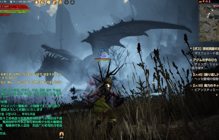 ・「フムの祭壇」関連のクエストの続き。行動力が戻って、三つ目の楽器精霊と会話できた。すると、多くの楽器精霊が現れ、道案内。その先で出会った楽器精霊から、再度祭壇に戻れと言われる。で戻ると、今度はドラゴンの巣に行けと。なんか行ったり来たりだな。ドラゴンの巣に着くと、巨大なドラゴンがお出迎え。ビビって立ち止まっていたが、どうもこのドラゴン、攻撃してこないっぽい。…ってなことで、ドラゴンの足元を通って目的地へ。すると、今度が三つの石塔と会話することになるんだが、またまた行動力がなくなって会話ができず。行動力って、こんなに少なかったけ?。仕方ないので、続きは後日。