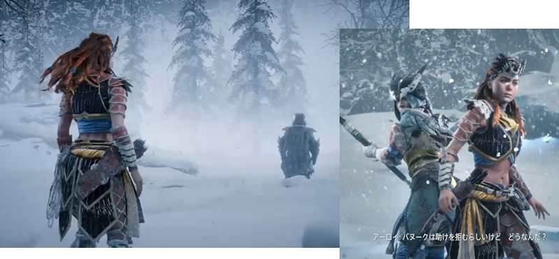 行方不明の二人の狩人を探すクエスト。ラストの機械獣戦も今となっては大したことない。しかし、イクリーと背中合わせで機械獣に挑むムービーがカッコ良すぎ(写真右)。