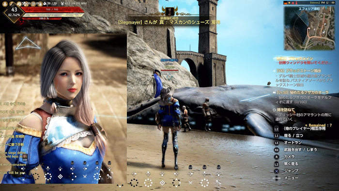 「[ボス]ブラックメイン」までクリアする。近くに鯨がうちあげられている港町を発見。