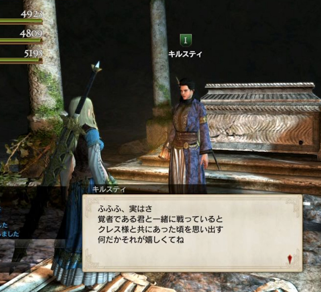 「ミラーク聖堂」から「スコールの運命」までクリア。スコールの町を解放したので、現在、フリアを従者にしている(写真)。