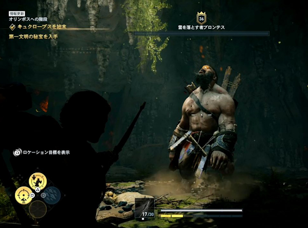 サイクロプスとの戦闘。とにかく力が強いので、接近戦は危険。つまり、弓での攻撃が主体になる。ただ、一回戦目は地震攻撃がよく分からなかったのと、もう一歩のところで功を焦って、ゲームーオーバーになってしまった。二回戦目はその教訓を生かして戦ったので、比較的余裕で勝てた(写真下)。残りはミノタウロスとメデューサか。