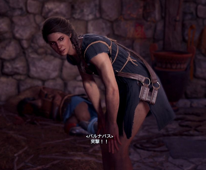 ・メインクエスト「流血の宴」から「真実を暴く」までクリア。「投獄」時の武器防具なしのカサンドラが色っぽい(写真)。ところで私、勘違いしていたみたいで、昨日戦った奴は弟じゃなかった。