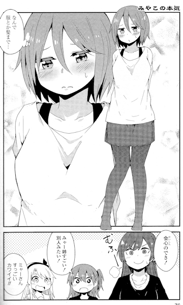 ・私に天使が舞い降りた! #12「天使のまなざし」(最終回)…小学生の学芸会のレベルじゃないぜ。お前らは劇団四季かぁ。しかも、途中から舞台じゃなくなっているし。とは言うものの、なかなか面白いシリーズだった。是非第2シーズンを。っと言いたいところだが、ほぼ原作を消化しているので、すぐには無理だろうな。ただ、みゃー姉が化粧するエピソード(写真下)だけは映像化して欲しい。この辺りはOVAでなんとか。
