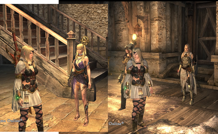 ・写真は今日雇った水樹奈々ボイスのソーサラー(写真左)と、坂本真綾ボイスのファイター(写真右)。あと今日、「エピタフロード」で網網タイツを手に入れたので、覚者の着飾り衣装が変わった。