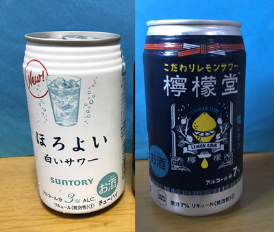 数日前に買ってきた「檸檬堂」。今日はアルコール分7%を買ってきた。前回の5%より、こっちの方が美味いな。ついでに、コメントに影響されて、「ほろよい」も買ってきた(笑)。