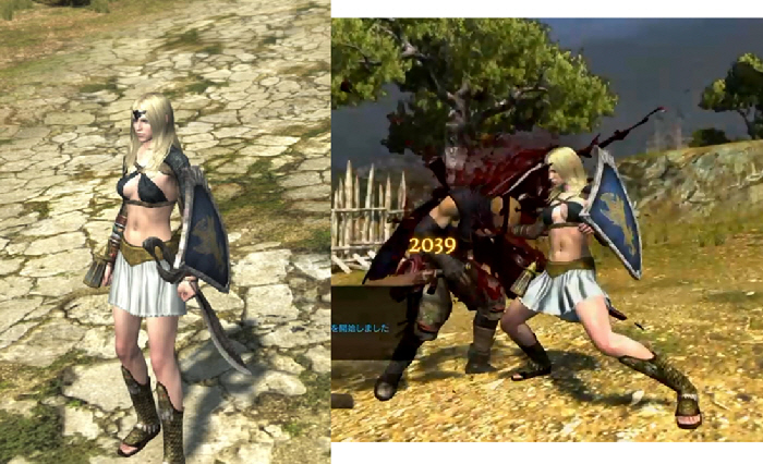 ・上のクエストのために、久しぶりにファイターに転職したが、以前着飾りで使っていた胴アーマーがどこかに行って、分からなくなったので、見た目が↓になってしまった。まぁ、これはこれでイイかな…っと(笑)。