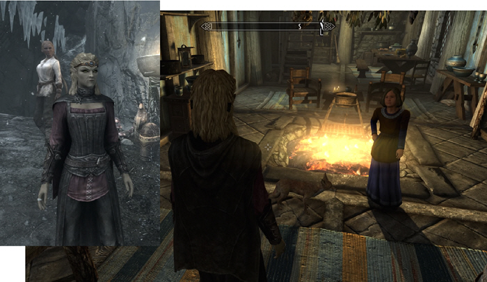 偶然に見つけた「ダークウォーター・クロッシング」と言う村。今まで何年もプレイしていながら、ここを見つけたのは、初めてだぜ(苦笑)。村にいるアネック・クラグ・ジャンパーと言う女性に話しかけると、上のクエストが始まる。クエストをクリアして報告すると、この女性を従者として雇うことができる。そんな訳で、雌ライオンのムジョルと別れて、こいつを従者にすることに。いや、「スカイリム」の中でも群を抜いて巨乳だったからじゃないぞ(笑)。しかし、こいつ、スゲーわ。遠距離では弓なんだが、接近戦になるとツルハシで戦うんだから(爆)。