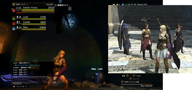 ・写真右は現在のパーティの様子。左から、シールドセージ、ソーサラー、ウォリアー、プリースト。
