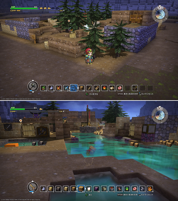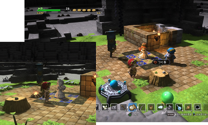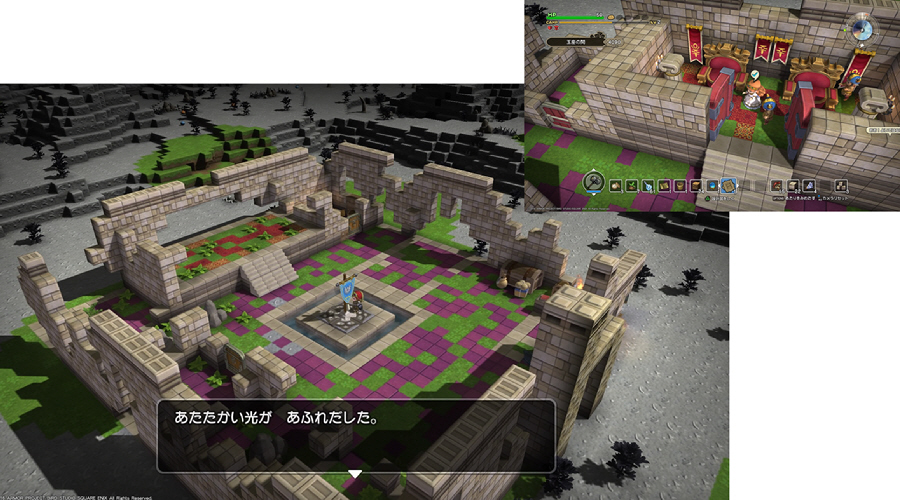 ・写真左は廃墟と化しているラダトーム城。さて、ここをどのように改築していくかな。一方、写真右は完成した「玉座の間」。