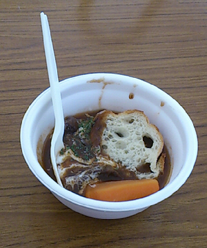 午前中、仕事だったので、昼から「小倉食市食座」に行って来た。ただ、天候が悪かったのと(どしゃ降りの雨)と人の多さで、食べられたのは「牛スネ肉の赤ワイン煮込み」だけだった。