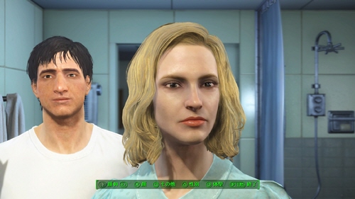 キャラメイクと事の発端のストーリー。詳しいストーリーはあっちこっちで書かれているので省略する。簡単に言うと、核戦争が起こり、シャルターに避難するまで。キャラは↓。色々と試したが、あまり良いパーツがない。結局、デフォルトが一番良いようなので、髪の色と口紅の色を変えただけにした。名前はいつも通り、「ヴァレリエ」。