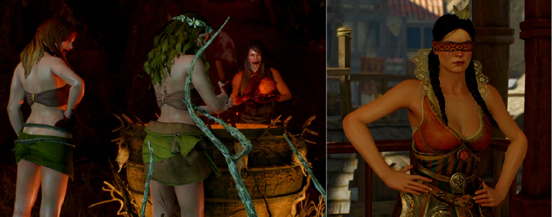 ・メインクエスト「最後の準備」はいくつかのクエストで構成されているので、結構時間がかかった。「大脱走」はウィッチハンターが多数出現するので苦戦したが、それ以上に苦労したのは「時空を越えて」。毒の霧と吹雪のシーンはマジでクリア出来ないと思ったよ。ところで、「灯台下暗し」で助け出す盲目の魔女(写真右)、巨乳過ぎ(笑)。