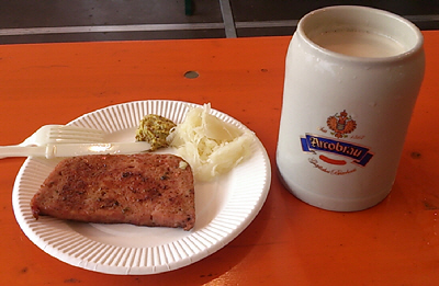 次、アルコブロイ ピルスナーとドイツ風ハムステーキ。