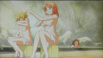 ミュージックビデオはやっと最後まで観れた。いや、楽しかったよ。一方、OVAは温泉ネタで完全にファンサービスもの。もっとも、元がエロアニメでないので、サービスシーンも精々↓の程度。ただ、出来自体はTVシリーズより面白い気がする(笑)。
