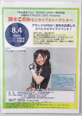 「ANIMAX MUSIX CAFÉ Present 鈴木このみ ミニライブ&トークショー」