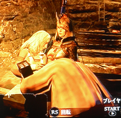 ・涸離宮の奥で、囚われの王妃を再開。マイキャラ、女なのに、王妃とやってしまったよ(笑)。何、このレズ展開は。ちなみに、↓が噂のお姫様抱っこのシーン。