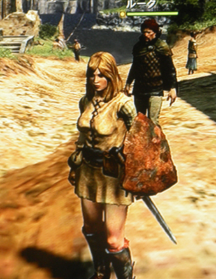 最初に祖先の覚者を操作することになる。これがこのゲームのチュートリアルにあたり、基本的な操作を覚える事が出来る。以前体験版をプレイしたのもここで、やっぱ前回と同様にプレイしていて楽しくない。しかもボスモンスターのキメラが異様にHPが高くて、途中でウンザリしてしまった。キメラを倒すと、ようやく本編の始まりで、ここからキャラメイキングが始まる。外観は↓。勿論、巨乳にした(上から二番目だけど(笑))。名前はいつも通り「ヴァレリエ」で、女戦士。ちなみに相棒は女魔法使いで超巨乳にしようかと考えている(爆)。さて、ここから自由にプレイでき、先ほどのチュートリアルより数段面白くなる。ちょっと安心。ただ、日本産だけあって、メインクエストが一本道っぽい気がする。やっぱ、不安。ところで最初に来ていた服がダサかったので、有り金叩いて装備を買った(勿論、武器を最優先で)。この装備がミニスカっぽくて、良い感じ(笑)。