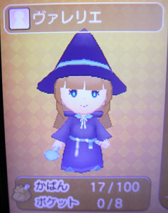 「スカイリム」のDLCも「キングダムズ オブ アマラー:レコニング」も終わってないのに、「ファンタジーライフ」を始めてしまった。まぁ、こちらは空いた時間にプレイするだけなので、問題はないと思う。とりあえず今日、すれ違い通信をしたが、一人もすれ違えなかった。ゲームショップを見て周っても、どこも品切れだったので、売れているとは思うんだが。まぁ皆、ゲームを始めたばかりなので、そこまでも余裕がないんだろうけどね。やっぱ、すれ違えるのは年明けくらいかな?。ちなみに私のキャラは↓。名前はいつも通りの「ヴァレリエ」で、現在の職業は魔法使い。もし、すれ違えたら、宜しくです。
