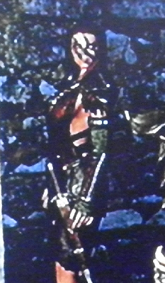 さて、狩りをする場所はブローテッド・マンの洞窟。ここで狩人たちと合流し、ウェアウルフ狩りを始める。そして、この場面で二つの選択肢がある。つまり、ウェアウルフを見逃すか、殺すかの二択。確かに、このウェアウルフにも可愛そうなところがあるが、半面、無意識とは言え、罪を犯したのも事実。この選択肢にはかなり悩んだ。一応、善人プレイなので、ここでは見逃すを選択するべきだったと思うが、これだと何の罪もない狩人を殺さなければならない。色々と考えた末、最終的にウェアウルフを殺すを選んだ。当然、デイドラからの報酬が気になったと言うのもある(苦笑)。ウェアウルフを退治して、その皮を剥ぐ。すると、ハーシーンが現れ、報酬して救世主の皮鎧を貰える。その救世主の皮鎧ってのが、↓なのだが、何これ、ダセェー。確かに腕や太股が見えて色っぽいし、後ろからはお尻が半分見えてエロイんだが、これじゃ、まるで原始人だよ。デイドラって、センス悪すぎ。即行で、元の装備に戻しましたとさ。チャンチャン。