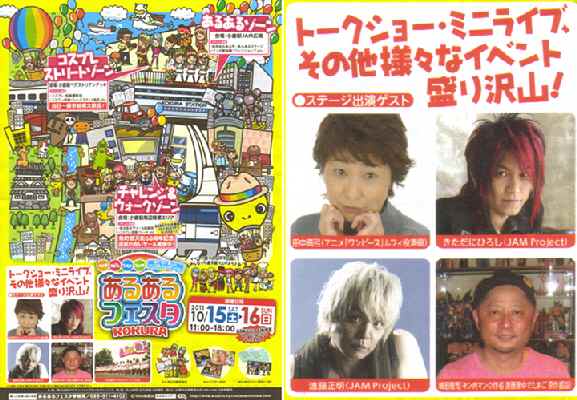 「12人のヴァイオリニスト×KoN」の公演が午後3時からだったので、今日は昼から町に向かことにした。小倉駅に到着すると、中央広場に人だかりが。何かと思ったら、「あるあるフェスタ」なるイベントをやっていた。しかも、ダニーに、遠藤、さらには田中真弓さんまで来ていたらしい。こんなイベントをやっているなんて、全然知らなかったよ。知っていたら、もう少し早く家を出たのに。このイベントに伴い、町のあらゆる所にコスプレイヤーや着ぐるみがいっぱい。小倉の町も変わったなぁ(苦笑)。
