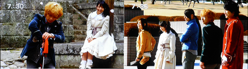 私は未だにアニメを卒業できなくて、よく観るんだけど、特撮ヒーローものは意外と早いうちに卒業したので、まず観ることはない(CSなどで劇場版の放送を偶に観るくらい)。…なので、今どんなヒーローがいるのかさっぱり分からない。ところが先日、某雑誌で「海賊戦隊ゴーカイジャー」の写真を偶然に観た。まぁ、「海賊戦隊ゴーカイジャー」はどうでも良いんだが(笑)、その中に一人の女の子に「おおっ」と思った。とりあえず、現物を確認と(笑)、今日、同番組を視聴した。実は小池唯っと言う子だったんだが、これが実に可愛い(左の写真の右の子、右の写真では左から二番目)。そんな訳で、この子を観るために今後、この番組を観てイイかなぁ…っと思った次第(笑)。ちなみの彼女のブログはここ。