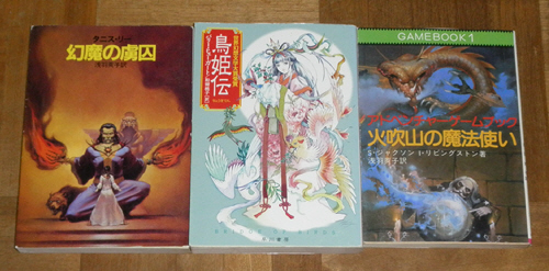 会社帰りに、古本屋へ行く。収穫は「幻魔の虜囚」、「鳥姫伝」、「火吹山の魔法使い」の三冊。「幻魔の虜囚」は以前から気になっていたもの。「鳥姫伝」はまだ新品が買えるし、古本屋でもよく見かけるものだが、この機会に購入。100円だったし。「火吹山の魔法使い」は今は亡き教養文庫のゲームブック。懐かしくて、思わず買ってしまった。