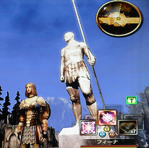 とりあえず、マイキャラは貴族の女性で戦士。髪は金髪のミディアム(本当は、ロングかセミロングにしたかったんだが、パーツがなかった)で、声は神秘的な感じ。顔のアップの写真が上手く撮れなかったので分かりづらいと思うけど、↓のような感じ。もう少しいじりたかったんが、項目があまりの細かすぎて段々分らなくなってきた(その割にないパーツもあるし)。さてスストーリーだが、まず最初に大ネズミ退治のクエストがあり、その後、敵兵の闇うち、逃亡、沼地のクエスト、闇の軍勢との戦闘…っと言った怒涛の展開。ただ行動範囲も決められているし、完全な一本道ストーリー。まったく自由さがないので、些かガッカリだった。内容も冒険ものっと言うよりは、「指輪物語」的な壮大な戦記ものなので、ちょっと私好みから外れるかな。但し、仲間に魔女のモリガン(こいつの衣装エロすぎ)が入ってから、ワールドマップが表示されるようになったので、ここからの行動が自由なんだろうな。つまり、ようやく本筋に入った…って事か(ここまでの道のりが長すぎ(笑))。ところで、マイキャラが闇の軍勢との戦いのとき、オーガに止めをさすシーンがむちゃくちゃカッコ良かった。しかも、時々モンスターの首を斬るシーンなんかもあって、清楚な外見の割に結構エグイ戦闘をする(笑)。…ってところで、今日は終了。