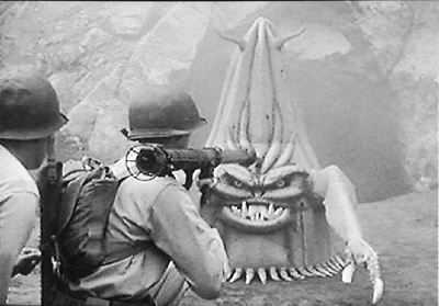 主要登場人物の大半が死ぬなど、B級SFながらハードなストーリーが悪くない。ただ、地球侵略と言いながら、一匹でやってきて、洗脳装置を八個しか持ってないと言うのに笑ってしまう。しかも田舎町の要人(何故か、将軍がいるが(笑))を洗脳するって、本当に侵略する気があるのか?(笑)。まぁ、その程度の作品だが、それを忘れられない作品にしたのは、金星人(金星ガニ)の奇抜なデザイン。このデザインをしたのが、ポール・ブレイズデルと言う人で、他にも「海獣の霊を呼ぶ女」や「暗闇の悪魔」っと言ったインパクトあるモンスターをデザインしている。50年代SFホラーになくてはならない人だ。それ以外にも、主役の二人が「スパイ大作戦」のピーター・グレイヴスと、マカロニウエスタンのスターであるリー・バン・クリーフだったりと(この人は後にジョン・カーペンターの「ニューヨーク1997」にも出てますね)、低予算映画ながらキャストが結構豪華。何気に色々と見所のある映画だ。