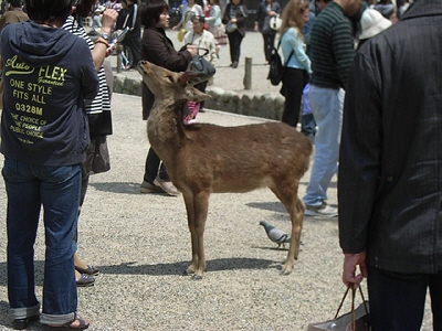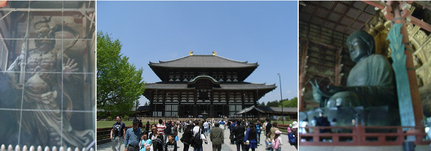 いつもより早く起き、早朝の新幹線で奈良へ(途中で在来線に乗り継いだけど(笑))。奈良に到着したのが、11時ごろ。とにかく日数が限られているので、すべてを周れない。…なので、特に有名なところだけを周ることにした。しかし奈良なんて、中学生の修学旅行以来だよ。JR奈良駅を降りて、まずは三条通りを東へ。猿沢池や五重塔を見ながら、一路東大寺を目指す。東大寺と言えば、奈良の大仏。久しぶりに見たが、やはりデカイ。ただ個人的には、南大門の仁王像の方が興味深く見れたけどね。ところで、これらの国宝や重要文化財を見るのには中学生では早すぎるのんじゃないかな。私も中学時代に見たときは、よく分かってなかったので、それほど面白いとも思わなかったし、感動もしなかった。やはり今の方が知識も増えているので、断然面白かったよ。