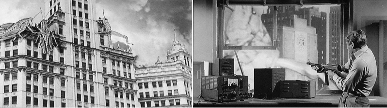 さて本作を観た感想だが、明らかに「放射能X」の影響下にある作品だね(アメリカのポスターなんて、そっくりだ)。ただ出来自体はそんなに悪くない。まぁ良いとも言えないが、暇つぶしに観る分には良いと思う。ただ合成が相当にチャチなので、今の人には評判悪いかも。確かに合成のマスクがズレ捲くりで、かなり酷い出来だが、私なんかは逆に味があって良いと思うが(笑)。あと、写真の上を実際のイナゴに這わせる特撮。これを悪く言う人が多いけど、私はアイデア賞もだと思うよ。それどころか、低予算映画でありながら、クライマックスにシカゴ襲撃のシーンがあるなど、結構頑張っていると思う。個人的には、何でもCGに頼っている最近の映画より遥かに面白かったよ。