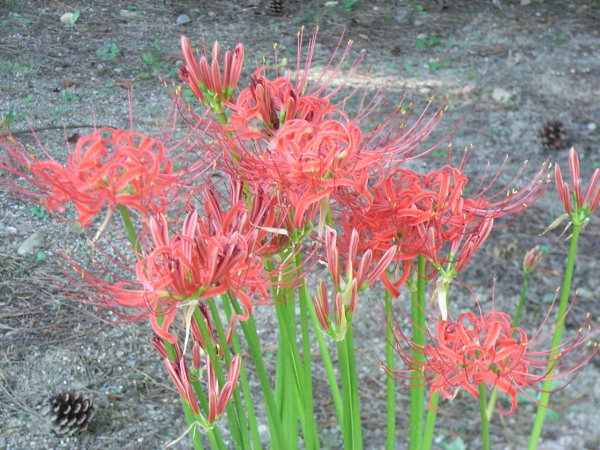 彼岸花を偶然見つけた。やはり、秋なんだぁ。ちなみに、咲いていた場所は北九州図書館。