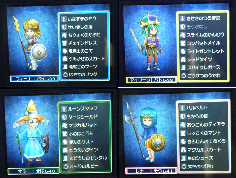 ちなみに、クリア時のパーティの装備とLvは、こんな(↓)感じ。
