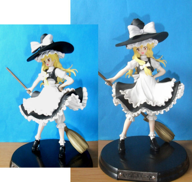 予約していた霧雨魔理沙のフィギュアを引き取ってきた。原作を知っている人には評判が悪いようだが、私は結構気に入った。まぁドロワーズが好き…って言うのもあるけど(笑)。