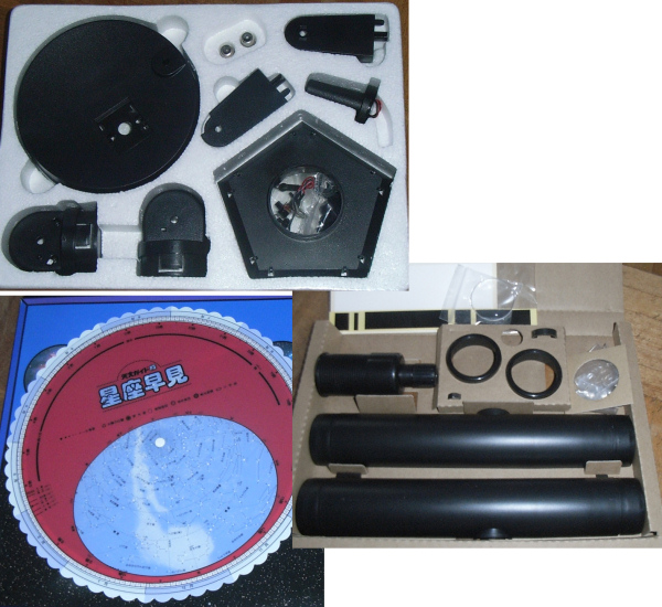ネットで注文したプラネタリウムと天体望遠鏡が届いた。さっそく天体望遠鏡は組み立てたが、プラネタリウムの方は少し時間がかかりそう。…なので、これは盆休みに組み立てることにした。ちなみに写真の左上が「プラネタリウム」、右が「天体望遠鏡」、左下が「星座早見盤」。