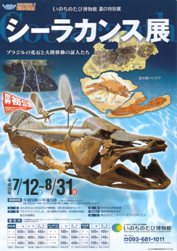 「シーラカンス展(いのちのたび博物館)」に行ってきた。ただシーラカンス自体が少なく、ほとんどが魚の化石だったのが残念だったけど、まぁこんなもんだろう。3.8mの巨大シーラカンスの化石を見れただけでも、行った甲斐があったし。