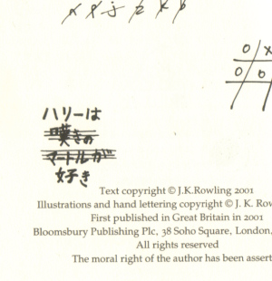 昨日大量購入した本の中に、ちょっと面白い本があったので紹介する。「幻の動物とその生息地」と言う本で、何が面白いかと言うと、「ハリポタ」のホグワーツ校の教科書と言う設定で作られているのだ。しかもこの本がハリポタの所有物と言うことになっており、あちらこちらにハリポタの落書きがある。中でも笑ったのが↓の落書きで、そうだったのかぁと妙に感心してしまった(笑)。ところでこの本はチャリティ本として作られたので、すでに出版社にも在庫がない。つまり残っているのは本屋の在庫分だけなので、結構貴重。見かけたら購入した方が良いかもしれない(「ハリポタ」ファンなら特に)。