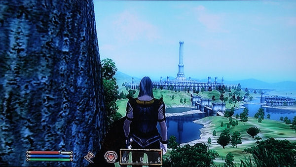 「The Elder Scrolls IV: オブリビオン」、プレイ3日目。昨日のようにダラダラとプレイしていると、他に何も出来なくなるので、今日は時間を決めてプレイする。さて前回、帝都に戻ったのには訳があって、もう少しちゃんとした武器を購入するためだった。さっそく武器屋に行ってみたのだが、値段が高い高い。仕方ないので、そのまま次の目的地に行くことにした。ところが途中、山道でインプや山賊に遭遇するのだが、一向に歯が立たない。オプションで難易度を下げてプレイすると、なんとか勝利。それでもなんか腑に落ちないので調べてみると、いつの間にか武器をレベルの低いものに変えていた(爆)。そうこうしている内に、スキングラードの町に到着。さっそく地図で調べてみると、まだ目的地の半分も来てないや。さて荷が増えてきたので、ここらで要らない物を売ろうとしたが、まだ真夜中。店がまだ開いてない。そんな訳で朝まで、先ほど発見したダンジョンで時間を潰すことにした。中は盗賊の巣で、倒すと結構おいしい物が手に入る。装備も結構充実したところで再びスキングラードの町の中へ。…っと、ここで予定時間が終了。今日はここまで。